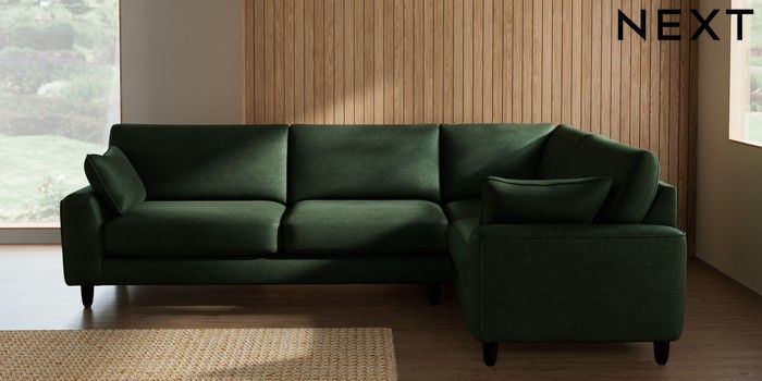 7.3.1 Buy Campbell Large Corner Sofa - Right Hand Luxe Chenille Dark Green High Leg - Dark from the Seasons online shop Click here to use our website with more accessibility support, for example screen readers