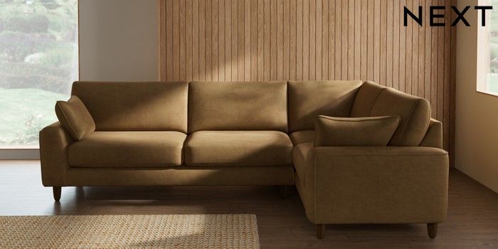 7.3.1 Buy Campbell Large Corner Sofa - Right Hand Luxe Chenille Honey Yellow High Leg - Mid from the Seasons online shop Click here to use our website with more accessibility support, for example screen readers