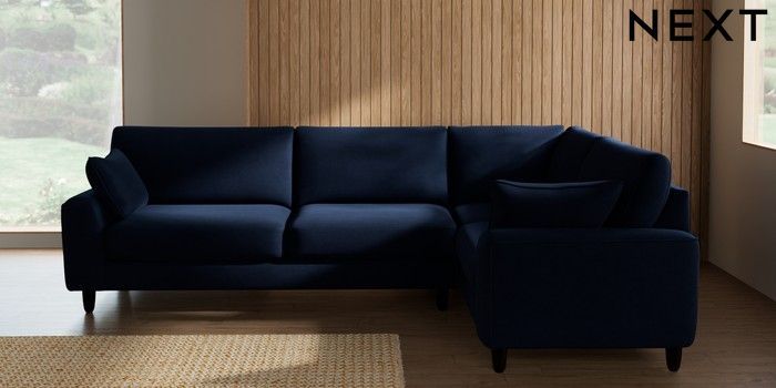 7.2.10 Buy Campbell Large Corner Sofa - Right Hand Luxe Chenille Navy Blue High Leg - Dark from the Seasons online shop Click here to use our website with more accessibility support, for example screen readers