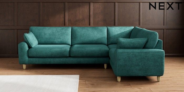 7.3.1 Buy Campbell Large Corner Sofa - Right Hand Plush Chenille Dark Teal Green High Leg - Light from the Seasons online shop Click here to use our website with more accessibility support, for example screen readers