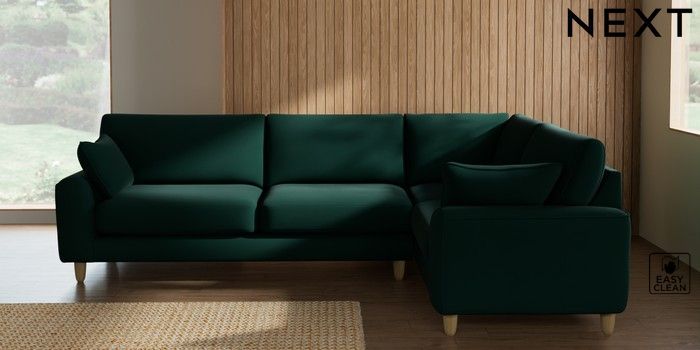 7.3.1 Buy Campbell Large Corner Sofa - Right Hand Plush Velvet Easy Clean Bottle Green High Leg - Light from the Seasons online shop Click here to use our website with more accessibility support, for example screen readers