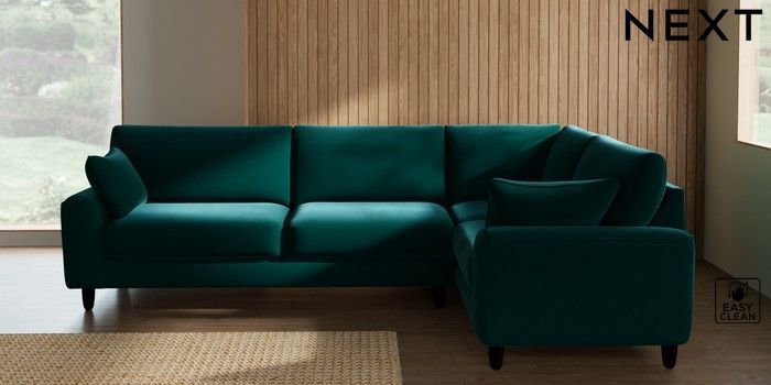 7.3.1 Buy Campbell Large Corner Sofa - Right Hand Plush Velvet Easy Clean Juniper Green High Leg - Dark from the Seasons online shop Click here to use our website with more accessibility support, for example screen readers