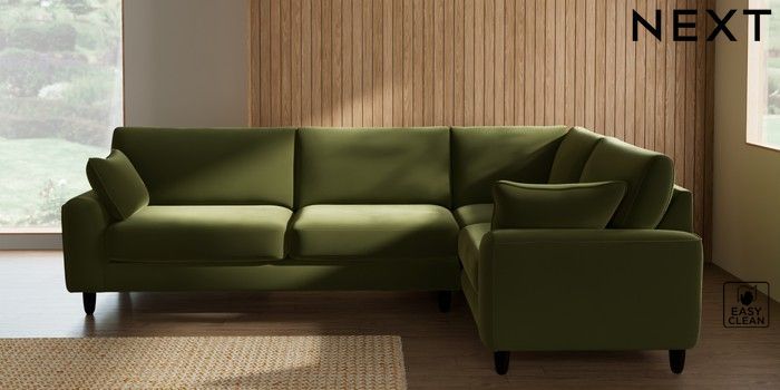 7.3.1 Buy Campbell Large Corner Sofa - Right Hand Plush Velvet Easy Clean Mid Olive Green High Leg - Dark from the Seasons online shop Click here to use our website with more accessibility support, for example screen readers