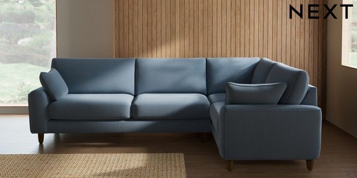 7.3.1 Buy Campbell Large Corner Sofa - Right Hand Relaxed Linen Look Mid Blue High Leg - Mid from the Seasons online shop Click here to use our website with more accessibility support, for example screen readers