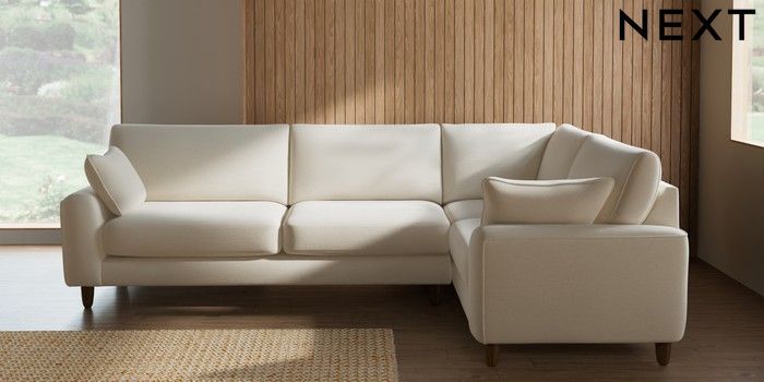 7.2.10 Buy Campbell Large Corner Sofa - Right Hand Ripple Chenille Oyster High Leg - Mid from the Seasons online shop Click here to use our website with more accessibility support, for example screen readers