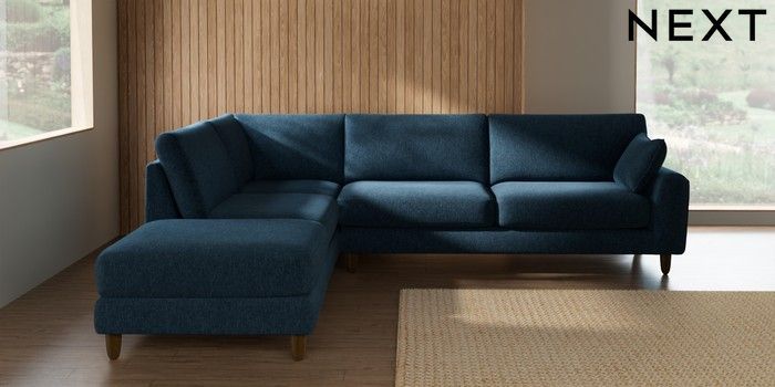 7.3.1 Buy Campbell Large Open End Corner Chaise - Left Hand Cotswold Chenille Dark Blue High Leg - Mid from the Seasons online shop Click here to use our website with more accessibility support, for example screen readers