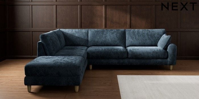 7.2.10 Buy Campbell Large Open End Corner Chaise - Left Hand Distressed Velour Midnight Blue High Leg - Light from the Seasons online shop Click here to use our website with more accessibility support, for example screen readers