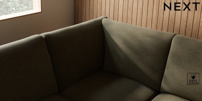 7.3.1 Buy Campbell Large Open End Corner Chaise - Left Hand Fine Chenille Easy Clean Dark Moss Green High Leg - Light from the Seasons online shop Click here to use our website with more accessibility support, for example screen readers