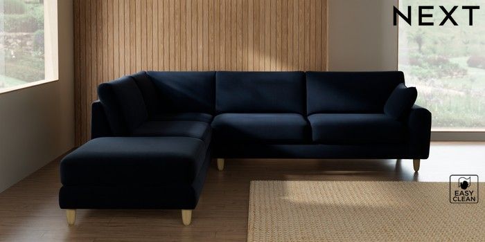 7.3.1 Buy Campbell Large Open End Corner Chaise - Left Hand Fine Chenille Easy Clean Dark Navy Blue High Leg - Light from the Seasons online shop Click here to use our website with more accessibility support, for example screen readers