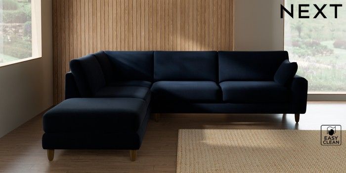 7.3.1 Buy Campbell Large Open End Corner Chaise - Left Hand Fine Chenille Easy Clean Dark Navy Blue High Leg - Mid from the Seasons online shop Click here to use our website with more accessibility support, for example screen readers