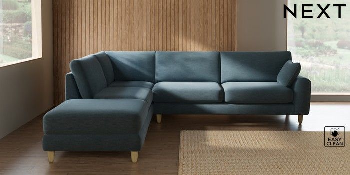 7.2.10 Buy Campbell Large Open End Corner Chaise - Left Hand Fine Chenille Easy Clean Mid Blue High Leg - Light from the Seasons online shop Click here to use our website with more accessibility support, for example screen readers