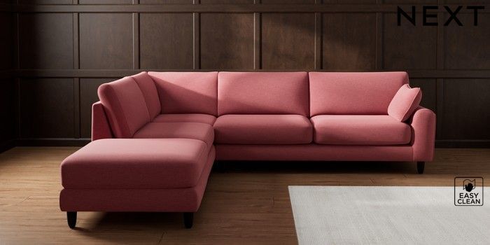 7.3.1 Buy Campbell Large Open End Corner Chaise - Left Hand Fine Chenille Easy Clean Mid Pink High Leg - Dark from the Seasons online shop Click here to use our website with more accessibility support, for example screen readers