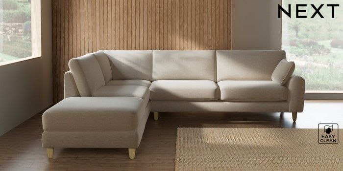 7.3.1 Buy Campbell Large Open End Corner Chaise - Left Hand Fine Chenille Easy Clean Oyster High Leg - Light from the Seasons online shop Click here to use our website with more accessibility support, for example screen readers