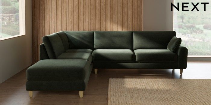7.2.10 Buy Campbell Large Open End Corner Chaise - Left Hand Luxe Chenille Mid Green High Leg - Light from the Seasons online shop Click here to use our website with more accessibility support, for example screen readers