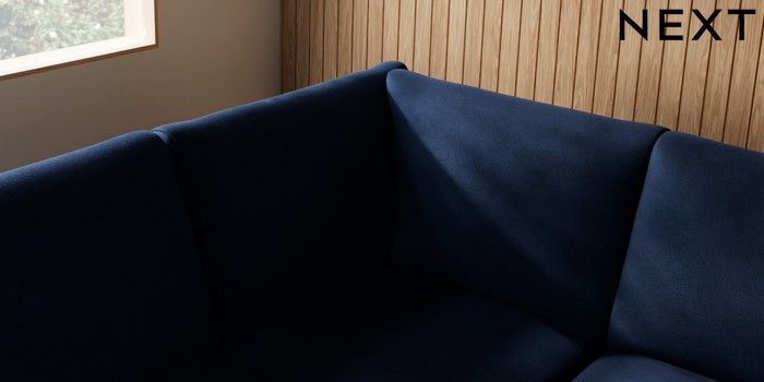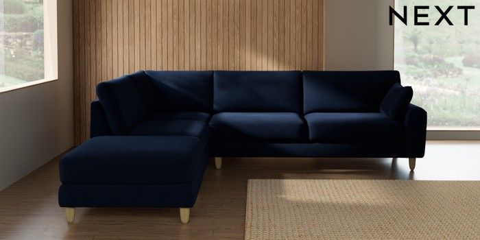 7.2.10 Buy Campbell Large Open End Corner Chaise - Left Hand Luxe Chenille Navy Blue High Leg - Light from the Seasons online shop Click here to use our website with more accessibility support, for example screen readers