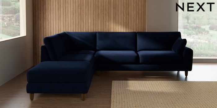 7.2.10 Buy Campbell Large Open End Corner Chaise - Left Hand Luxe Chenille Navy Blue High Leg - Mid from the Seasons online shop Click here to use our website with more accessibility support, for example screen readers