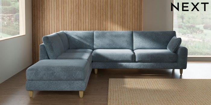 7.2.10 Buy Campbell Large Open End Corner Chaise - Left Hand Plush Chenille Light Blue High Leg - Light from the Seasons online shop Click here to use our website with more accessibility support, for example screen readers