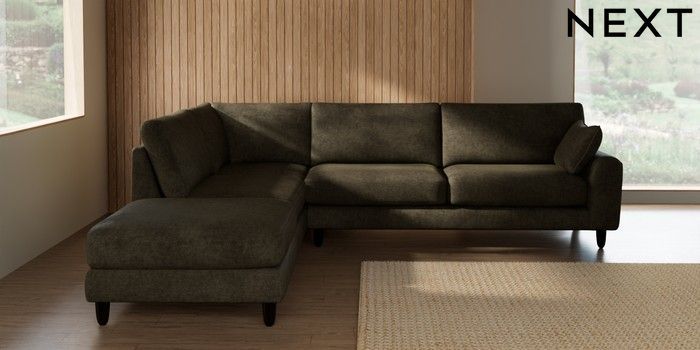 7.3.1 Buy Campbell Large Open End Corner Chaise - Left Hand Plush Chenille Moss Green High Leg - Dark from the Seasons online shop Click here to use our website with more accessibility support, for example screen readers