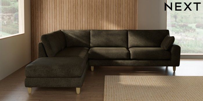 7.2.10 Buy Campbell Large Open End Corner Chaise - Left Hand Plush Chenille Moss Green High Leg - Light from the Seasons online shop Click here to use our website with more accessibility support, for example screen readers