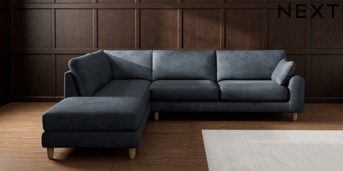 7.2.10 Buy Campbell Large Open End Corner Chaise - Left Hand Plush Chenille Slate Blue High Leg - Light from the Seasons online shop Click here to use our website with more accessibility support, for example screen readers