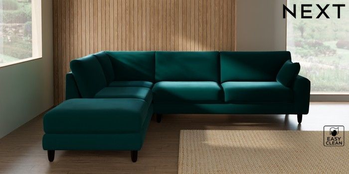 7.3.1 Buy Campbell Large Open End Corner Chaise - Left Hand Plush Velvet Easy Clean Juniper Green High Leg - Dark from the Seasons online shop Click here to use our website with more accessibility support, for example screen readers