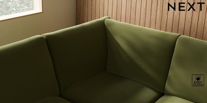 7.3.1 Buy Campbell Large Open End Corner Chaise - Left Hand Plush Velvet Easy Clean Mid Olive Green High Leg - Light from the Seasons online shop Click here to use our website with more accessibility support, for example screen readers