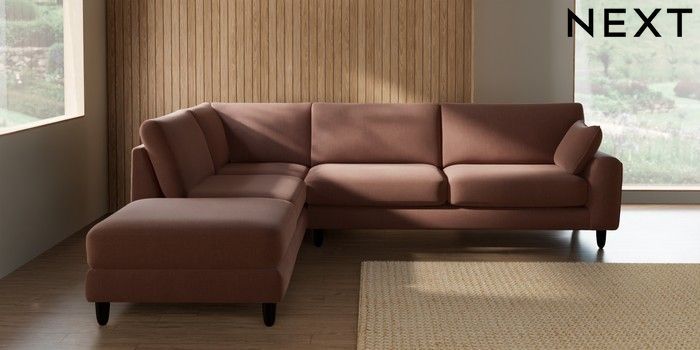 7.3.1 Buy Campbell Large Open End Corner Chaise - Left Hand Relaxed Linen Look Light Rust Brown High Leg - Dark from the Seasons online shop Click here to use our website with more accessibility support, for example screen readers
