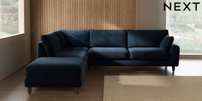 7.2.10 Buy Campbell Large Open End Corner Chaise - Left Hand Ripple Chenille Dark Blue High Leg - Mid from the Seasons online shop Click here to use our website with more accessibility support, for example screen readers