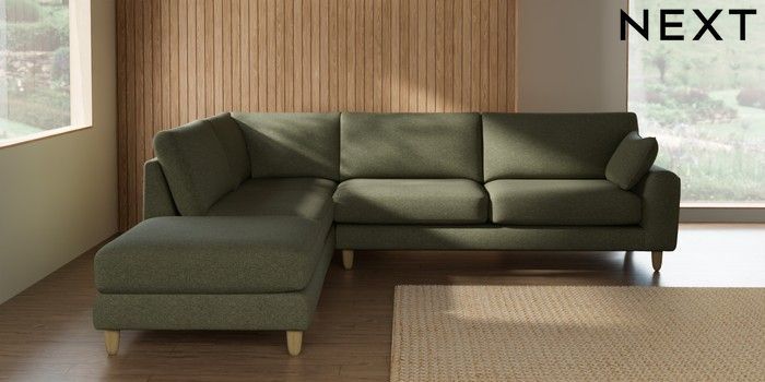 7.3.1 Buy Campbell Large Open End Corner Chaise - Left Hand Tweedy Chenille Mid Moss Green High Leg - Light from the Seasons online shop Click here to use our website with more accessibility support, for example screen readers