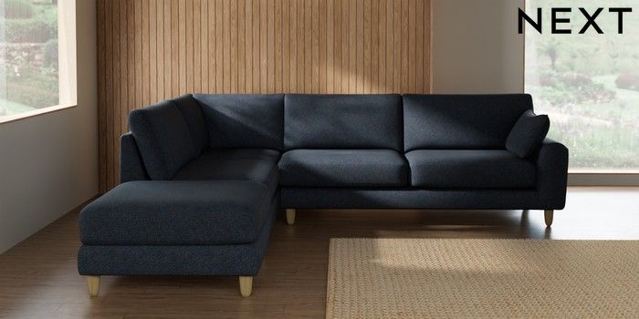 7.3.1 Buy Campbell Large Open End Corner Chaise - Left Hand Tweedy Chenille Navy Blue High Leg - Light from the Seasons online shop Click here to use our website with more accessibility support, for example screen readers