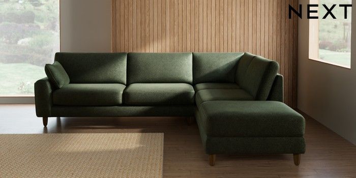 7.3.1 Buy Campbell Large Open End Corner Chaise - Right Hand Boucle Chenille Dark Moss Green High Leg - Mid from the Seasons online shop Click here to use our website with more accessibility support, for example screen readers
