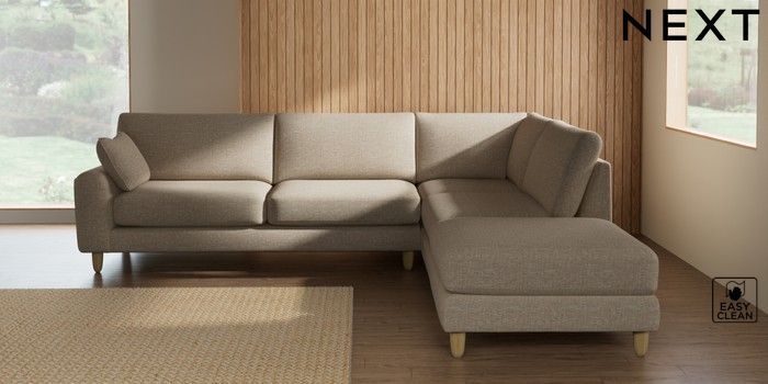 7.3.1 Buy Campbell Large Open End Corner Chaise - Right Hand Boucle Weave Easy Clean Dark Natural High Leg - Light from the Seasons online shop Click here to use our website with more accessibility support, for example screen readers