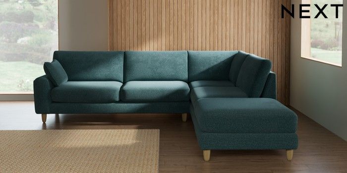 7.3.1 Buy Campbell Large Open End Corner Chaise - Right Hand Chunky Chenille Mid Teal Green High Leg - Light from the Seasons online shop Click here to use our website with more accessibility support, for example screen readers