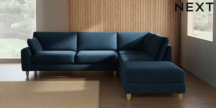 7.3.1 Buy Campbell Large Open End Corner Chaise - Right Hand Cotswold Chenille Dark Blue High Leg - Light from the Seasons online shop Click here to use our website with more accessibility support, for example screen readers
