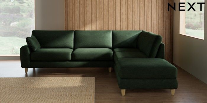 7.3.1 Buy Campbell Large Open End Corner Chaise - Right Hand Luxe Chenille Dark Green High Leg - Light from the Seasons online shop Click here to use our website with more accessibility support, for example screen readers