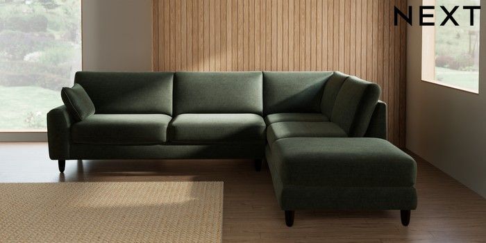 7.3.1 Buy Campbell Large Open End Corner Chaise - Right Hand Luxe Chenille Mid Green High Leg - Dark from the Seasons online shop Click here to use our website with more accessibility support, for example screen readers
