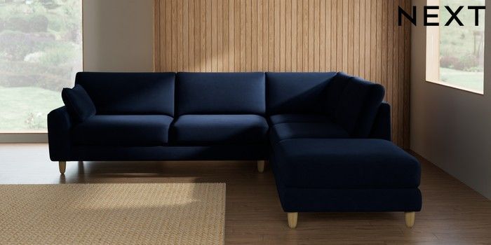 7.2.10 Buy Campbell Large Open End Corner Chaise - Right Hand Luxe Chenille Navy Blue High Leg - Light from the Seasons online shop Click here to use our website with more accessibility support, for example screen readers