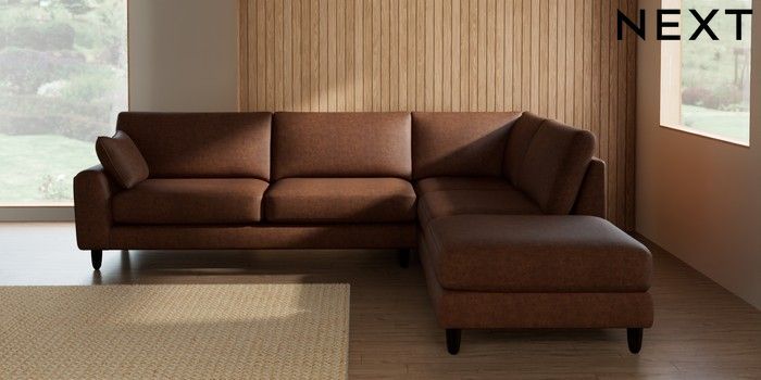7.3.1 Buy Campbell Large Open End Corner Chaise - Right Hand Monza Faux Leather Easy Clean Chestnut Brown High Leg - Dark from the Seasons online shop