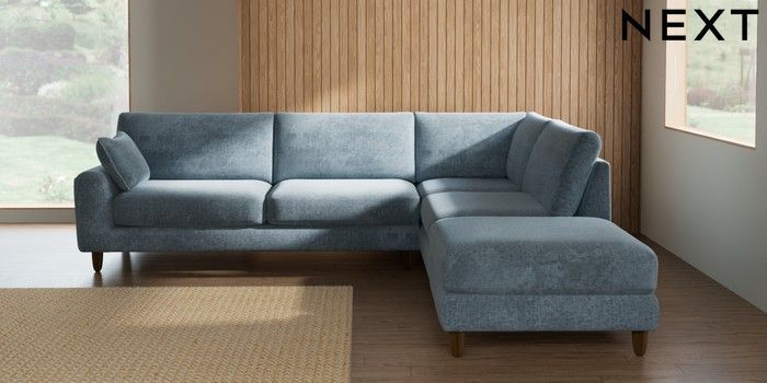 7.2.10 Buy Campbell Large Open End Corner Chaise - Right Hand Plush Chenille Light Blue High Leg - Mid from the Seasons online shop Click here to use our website with more accessibility support, for example screen readers