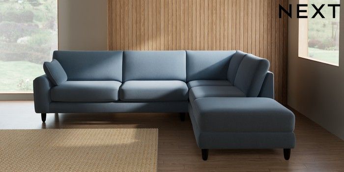 7.3.1 Buy Campbell Large Open End Corner Chaise - Right Hand Relaxed Linen Look Mid Blue High Leg - Dark from the Seasons online shop Click here to use our website with more accessibility support, for example screen readers