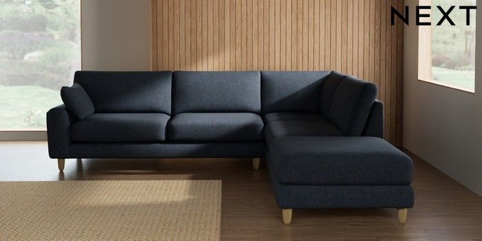 7.3.1 Buy Campbell Large Open End Corner Chaise - Right Hand Tweedy Chenille Navy Blue High Leg - Light from the Seasons online shop Click here to use our website with more accessibility support, for example screen readers