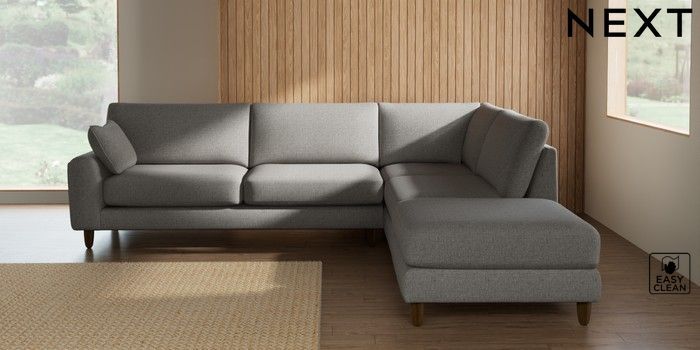 7.3.1 Buy Campbell Large Open End Corner Chaise - Right Hand Woven Chenille Easy Clean Light Grey High Leg - Mid from the Seasons online shop Click here to use our website with more accessibility support, for example screen readers