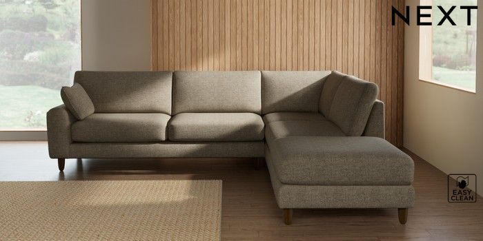 7.3.1 Buy Campbell Large Open End Corner Chaise - Right Hand Woven Chenille Easy Clean Mid Natural High Leg - Mid from the Seasons online shop Click here to use our website with more accessibility support, for example screen readers