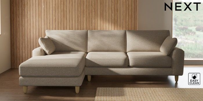 7.2.10 Buy Campbell Medium Sofa Chaise - Left Hand Boucle Weave Easy Clean Dark Natural High Leg - Light from the Seasons online shop Click here to use our website with more accessibility support, for example screen readers