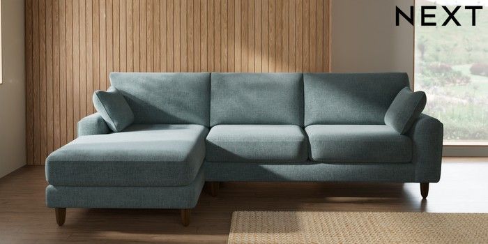 7.2.10 Buy Campbell Medium Sofa Chaise - Left Hand Chunky Chenille Light Teal Green High Leg - Mid from the Seasons online shop Click here to use our website with more accessibility support, for example screen readers