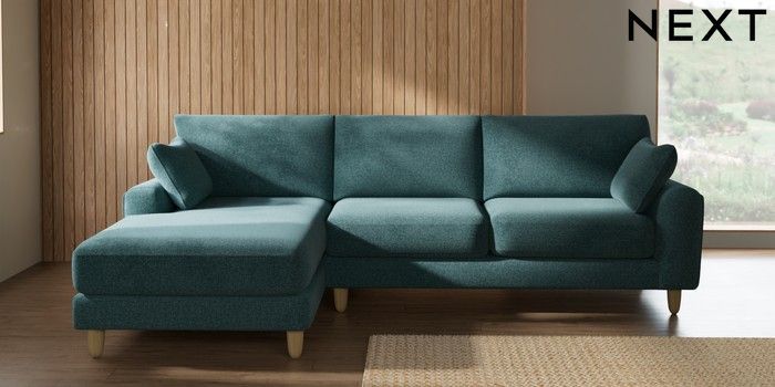 7.2.10 Buy Campbell Medium Sofa Chaise - Left Hand Chunky Chenille Mid Teal Green High Leg - Light from the Seasons online shop Click here to use our website with more accessibility support, for example screen readers