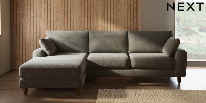 7.2.10 Buy Campbell Medium Sofa Chaise - Left Hand Chunky Marl Light Olive Green High Leg - Mid from the Seasons online shop Click here to use our website with more accessibility support, for example screen readers