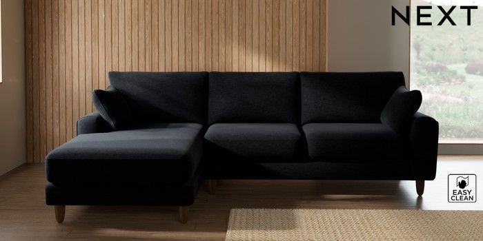 7.2.10 Buy Campbell Medium Sofa Chaise - Left Hand Fine Chenille Easy Clean Black High Leg - Mid from the Seasons online shop Click here to use our website with more accessibility support, for example screen readers