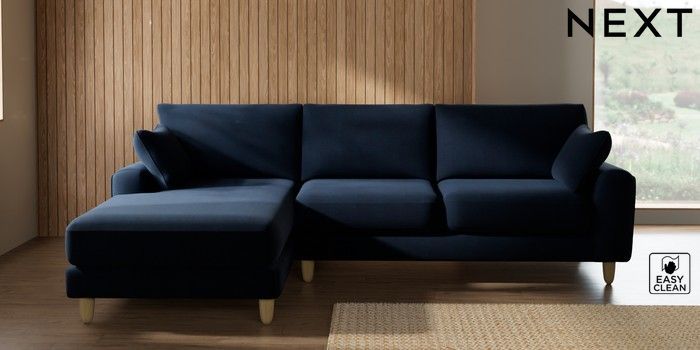 7.2.10 Buy Campbell Medium Sofa Chaise - Left Hand Fine Chenille Easy Clean Dark Navy Blue High Leg - Light from the Seasons online shop Click here to use our website with more accessibility support, for example screen readers