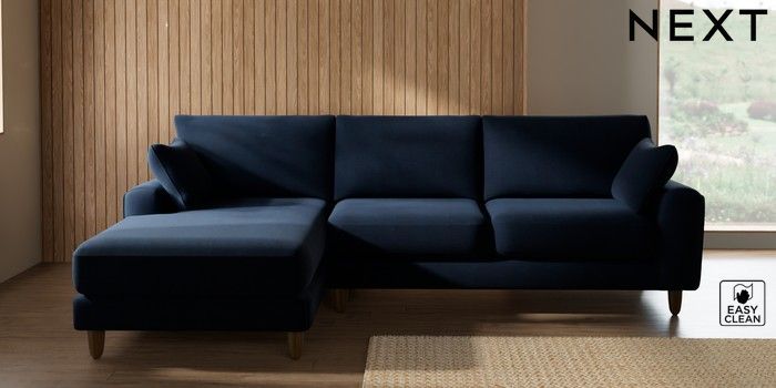 7.2.10 Buy Campbell Medium Sofa Chaise - Left Hand Fine Chenille Easy Clean Dark Navy Blue High Leg - Mid from the Seasons online shop Click here to use our website with more accessibility support, for example screen readers